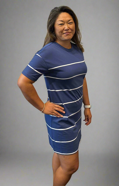 Slip into pure comfort with the Sway Stripe Mini Dress in Yacht Blue. This midweight cotton jersey dress features a heavy soft wash that feels gent...