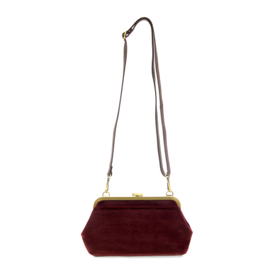 Add a touch of luxury to your everyday style with our Velvet Vivie Frame Lock Convertible Crossbody/Wristlet in Burgundy. Convertible to fit any oc...