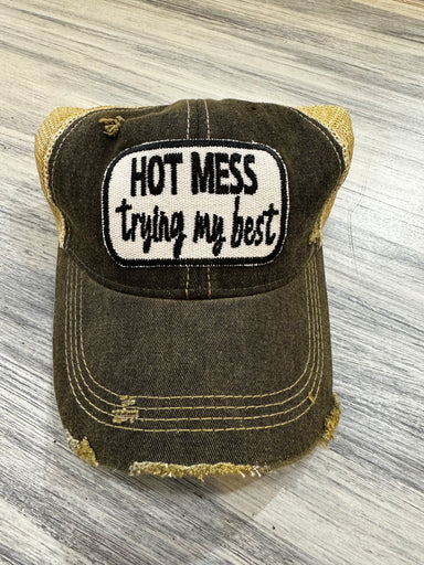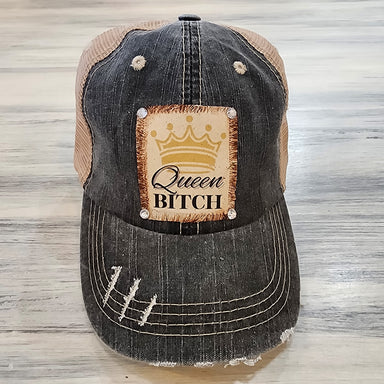 Fun distressed trucker hat with a patch saying on it. There is also a little bling added to this fun one. Great as a gift or for yourself.