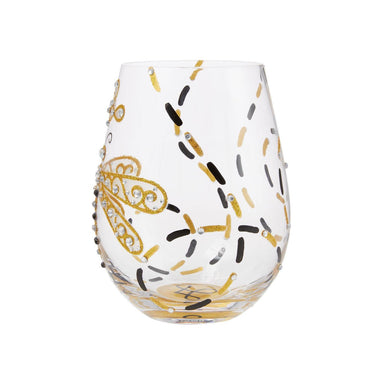 This gorgeous stemless wine glass from Lolita features a hand-painted dragonfly in black and gold. With inlaid crystal patterning, the stylish crea...