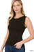 Cropped Seamless Round Neck Tank - Black