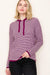 This pullover hoodie sweater combines a soft waffle texture with subtle stripes and color-trimmed edges for a relaxed, stylish look. In a rich dark magenta shade, it offers easy comfort and warmth, making it an ideal choice for casual days and cozy layering.