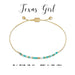 The Texas Girl bracelet is a great gift for someone who is moving away but will always be a Texas girl at heart, or even someone who isn't going anywhere but has Texas pride! This Morse code bracelet is encoded with beautiful turquoise and white glass beads.