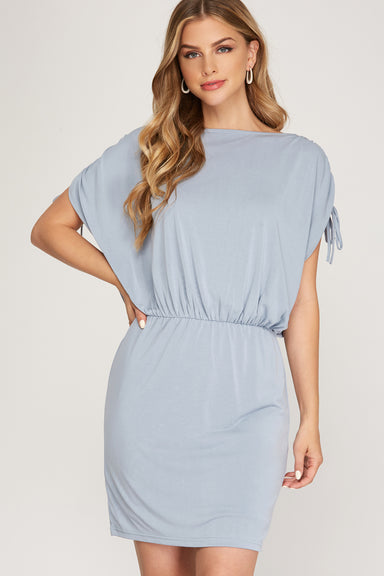 Take comfort and style to the next level with this Sleeveless Ruched Drawstring Drop Shoulder Knit Dress. The blue grey color adds a touch of uniqu...