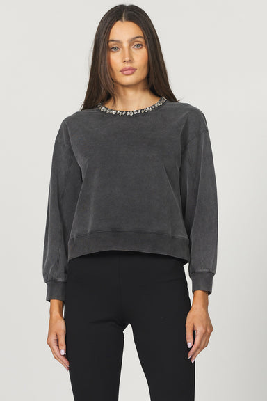 Zella Long Sleeve Crew Neck w/Jewel Detailing Meet your new everyday essential. This relaxed-fit crew neck combines the moody sophistication of bla...