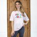 This soft pink crew neck t-shirt features "Holly Jolly" in vibrant multicolor glitter, adding a festive sparkle to your casual look. Made for easy comfort, it’s perfect for spreading holiday cheer while staying cozy all day.