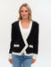 The Liv Asymmetrical Cardigan brings together style and comfort in one effortless piece. Its striking black base with crisp white trim and elegant gold buttons creates an instantly polished look, while the soft eyelash fabric feels wonderfully cozy against your skin. The asymmetrical opening adds modern flair, and faux pockets keep the silhouette sleek. Layer it over anything for a sophisticated touch that doesn't compromise on warmth or wearability.