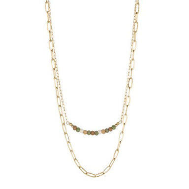 16-20in GOLD LINK NECKLACE WITH NATURAL MULIT BEAD STRAND