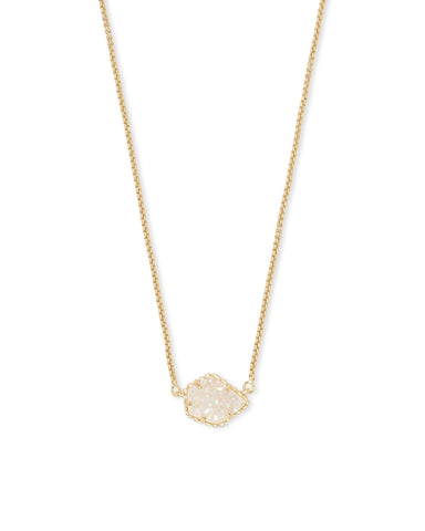 Daphne Gold Crystal Frame Short Pendant Iridescent Drusy