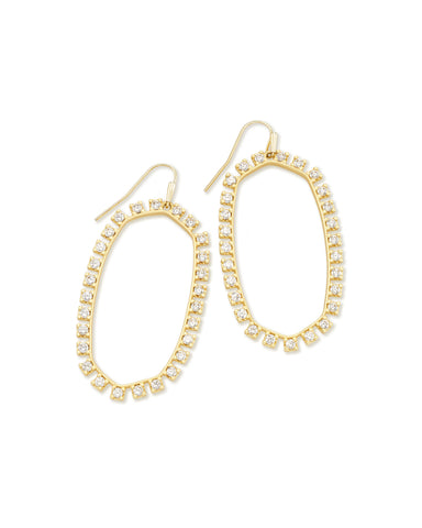 These Elle open frame earrings have white cz crystals. 1.75" L X 0.75" W on ear wire