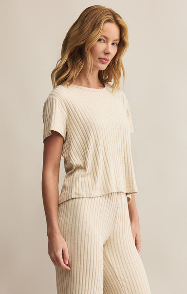 The Kara Rib Tee in Light Denim combines a relaxed fit with a soft, silky rib knit fabric that feels gentle against your skin. Its classic crew ne...