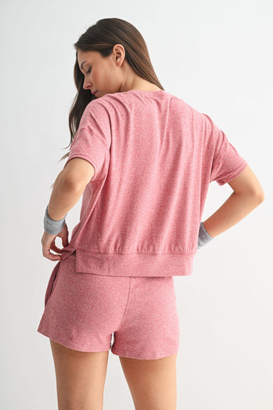 Indulge in luxurious relaxation with this Brushed Hacci Dolman Short Sleeve Top. Made from soft-as-a-cloud fabric, this crewneck top effortlessly t...