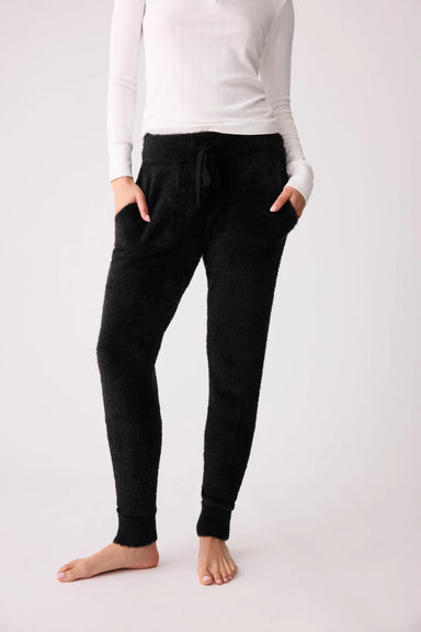 Enjoy ultimate comfort with these black feather knit banded PJ pants. The banded cuffs provide a cozy fit while keeping warmth in, and the soft fle...