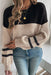 Rock this colorblock knit sweater with its bold black and beige blocking and striped sleeves. The relaxed fit keeps you comfortable while looking effortlessly put-together, whether you're pairing it with jeans or a skirt. A versatile wardrobe essential that works hard for your style.