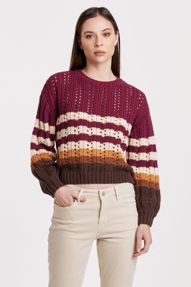 Stay cozy and cute in this Georgina sweater with a playful mix of fuzzy stripes. The drop shoulder design adds a relaxed fit in neutral tones for e...