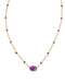 Mini Elisa Enamel Framed Pendant Necklace Gold Purple Mother Of Pearl
