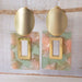 Cute square acrylic earrings with gold accents.