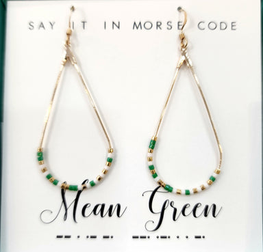 Be ready to show your school spirit with these oh-so trendy Morse Code Mean Green earrings! You'll be lookin' sharp wearing these white and green "...