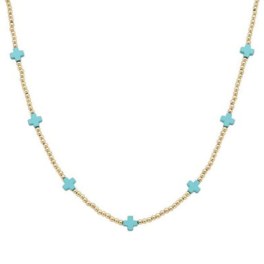 This stunning Dame Turquoise Cross Necklace features a beautiful stationed turquoise cross pendant on a delicate 16-18 inch silver seed bead chain....