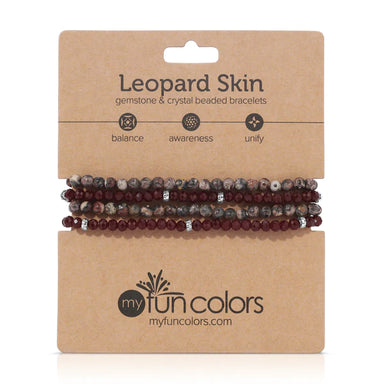 This set of 4 bracelets comes with the meaning of the stones on the back of the card making it great for gift giving or to keep for yourself. "Leop...