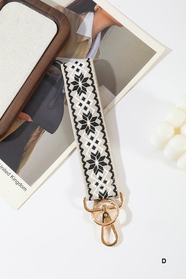 Keep your keys stylishly secure with the Jacquard Weave Wristlet Keychain in Black. Featuring a trendy woven pattern and durable gold hardware, thi...