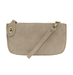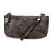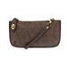This clutch can be used as a crossbody or a wristlet as it comes with to different straps. The lux finish gives it a soft brushed feel.