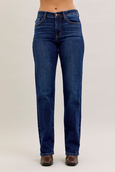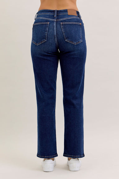 These mid-rise straight jeans deliver that perfect everyday fit with just enough stretch to keep you comfortable all day long. The clean dark denim...