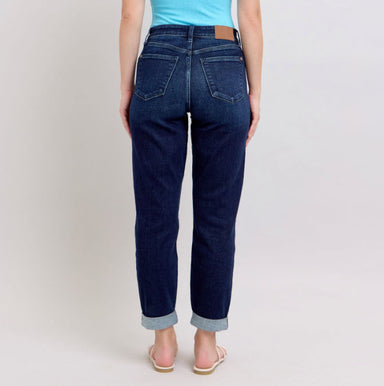 Get ready to elevate your denim game with our High-Rise Cuffed Boyfriend Jeans. Made with dark denim, these jeans offer a clean and polished look w...