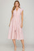 This pink and white midi dress features a unique drop shoulder design, smocked waist for a flattering fit, and a front zipper for added style. With eye-catching eyelet print and convenient pockets, this dress is both chic and practical. Elevate your wardrobe with this must-have piece!