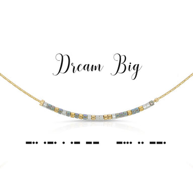 You'll reach for the stars wearing Dream Big, a Morse code necklace encoded using two beautiful shades of iridescent gray beads Standard necklace l...