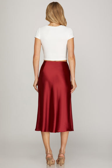 Slip into effortless elegance with the Northpointe Midi Skirt. Crafted from luxe satin with a sumptuous soft drape, this high-rise midi flows beau...