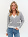 Add a stylish edge to your casual wardrobe with the Libby V-Neck Sweater. Its flattering v-neck and color block design effortlessly elevate any outfit. With its comfortable fit, this sweater is perfect for layering or making a chic statement on its own. Available in heather grey with white trim.