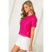 Shine bright in this hot pink sequin short sleeve top. Fully lined for comfort and coverage, it's the perfect piece for adding sparkle to your everyday look or dressing up for a night out. The eye-catching sequins catch the light beautifully, making you stand out in the best way possible. Effortless style that feels as good as it looks.