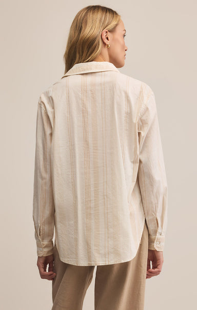 This Seaport Striped Shirt in Biscuit combines classic design with effortless comfort. Crafted from lightweight, yarn-dyed cotton poplin, it offers...